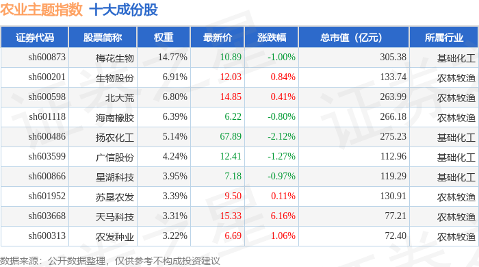 农业主题(000122)指数十大成份股详情如下:
