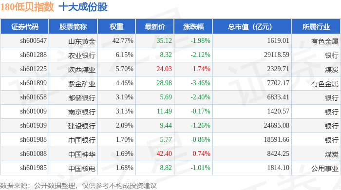 资金流向方面,180低贝(000136)指数成份股当日主力资金净流出合计27.42亿元,游资资金净流入合计8.85亿元,散户资金净流入合计18.57亿元。成份股资金流向详情见下表: