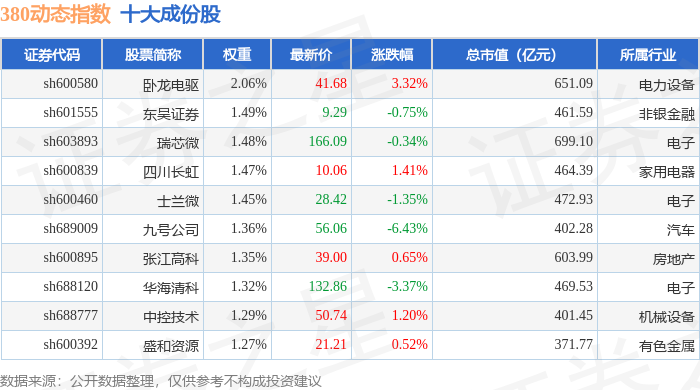 380动态(000141)指数十大成份股详情如下:
