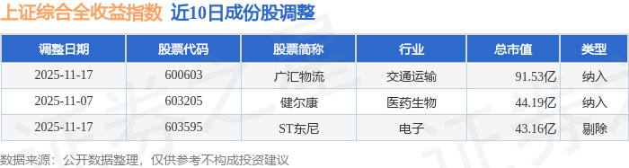 近10日内上证综合全收益(000888)指数成份股做了调整,新纳入了2只股票,剔除了1只股票。