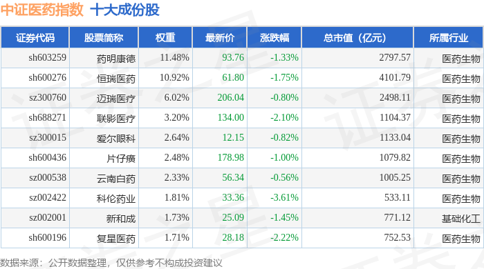 资金流向方面,中证医药(000933)指数成份股当日主力资金净流出合计37.2亿元,游资资金净流入合计9.73亿元,散户资金净流入合计27.47亿元。成份股资金流向详情见下表: