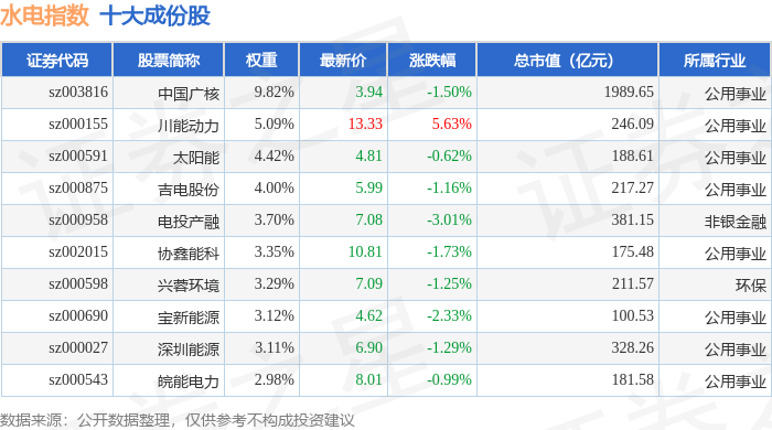 资金流向方面,水电指数(399234)成份股当日主力资金净流出合计1.42亿元,游资资金净流出合计4041.82万元,散户资金净流入合计1.82亿元。成份股资金流向详情见下表: