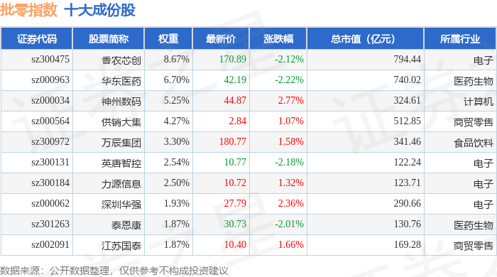 证券之星消息,11月17日,批零指数(399236)报收于1638.91点,涨0.01%,成交397.28亿元,换手率4.55%。当日该指数成份股中,上涨的有51家,三木集团以10.06%的涨幅领涨,下跌的有44家,三夫户外以10.0%的跌幅领跌。