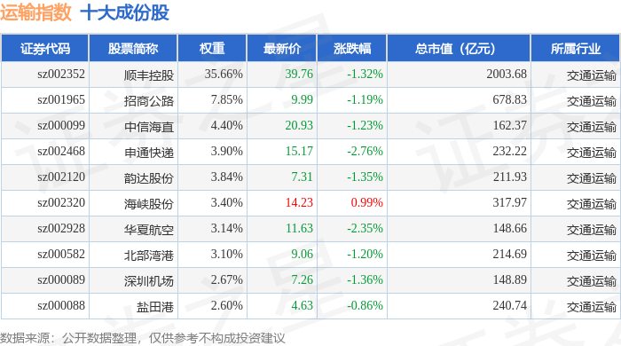 资金流向方面,运输指数(399237)成份股当日主力资金净流出合计3.96亿元,游资资金净流入合计1089.83万元,散户资金净流入合计3.85亿元。成份股资金流向详情见下表: