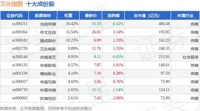资金流向方面,文化指数(399248)成份股当日主力资金净流出合计4798.38万元,游资资金净流出合计4241.34万元,散户资金净流入合计9039.73万元。成份股资金流向详情见下表: