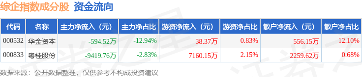 资金流向方面,综企指数(399249)成份股当日主力资金净流出合计1.0亿元,游资资金净流入合计7198.51万元,散户资金净流入合计2815.77万元。成份股资金流向详情见下表: