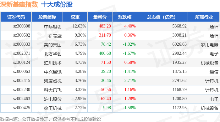 深新基建(399274)指数十大成份股详情如下: