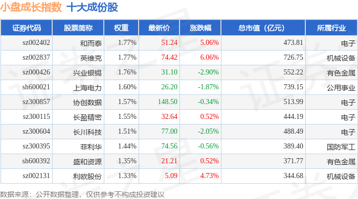 证券之星消息,11月17日,小盘成长(399376)指数报收于6155.83点,涨0.72%,成交1201.5亿元,换手率2.85%。当日该指数成份股中,上涨的有71家,容百科技以20.0%的涨幅领涨,下跌的有94家,奥特维以5.86%的跌幅领跌。