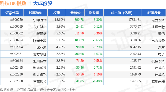 证券之星消息,11月17日,科技100(399608)指数报收于4094.76点,跌0.56%,成交1764.89亿元,换手率1.86%。当日该指数成份股中,上涨的有44家,天华新能以20.0%的涨幅领涨,下跌的有56家,中材科技以4.27%的跌幅领跌。