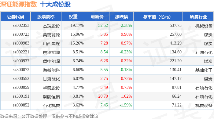 深证能源(399613)指数十大成份股详情如下: