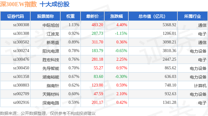 证券之星消息,11月17日,深300EW(399633)指数报收于6117.91点,涨0.01%,成交3500.02亿元,换手率1.38%。当日该指数成份股中,上涨的有110家,天华新能以20.0%的涨幅领涨,下跌的有185家,迈为股份以6.71%的跌幅领跌。