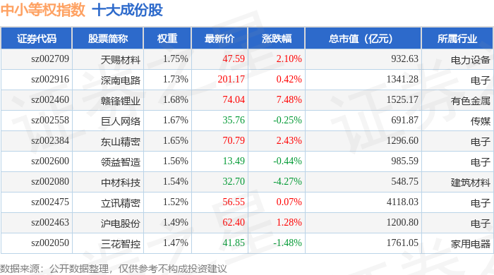 证券之星消息,11月17日,中小等权(399634)指数报收于4224.38点,跌0.17%,成交1187.64亿元,换手率1.39%。当日该指数成份股中,上涨的有32家,中矿资源以10.0%的涨幅领涨,下跌的有67家,以岭药业以5.42%的跌幅领跌。