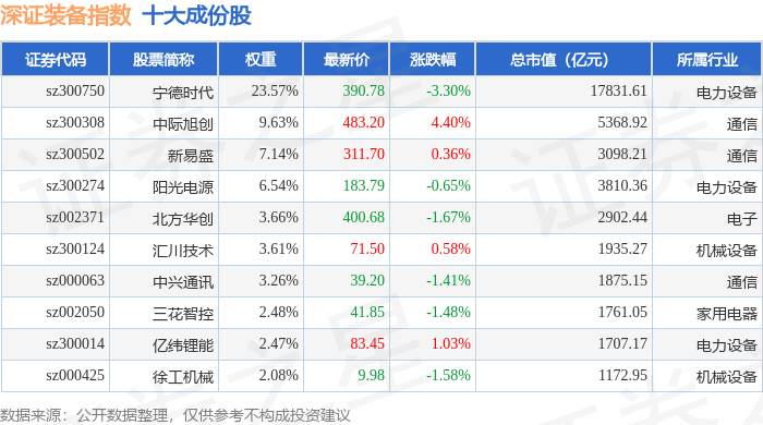 深证装备(399636)指数十大成份股详情如下: