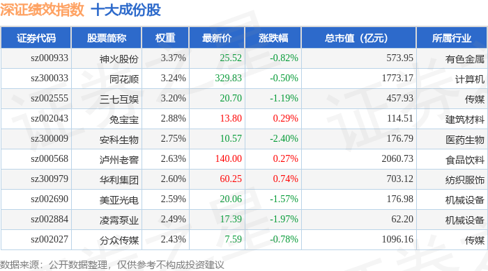 证券之星消息,11月17日,深证绩效(399655)指数报收于10887.72点,跌0.34%,成交763.46亿元,换手率1.3%。当日该指数成份股中,上涨的有36家,天华新能以20.0%的涨幅领涨,下跌的有62家,百洋医药以3.88%的跌幅领跌。