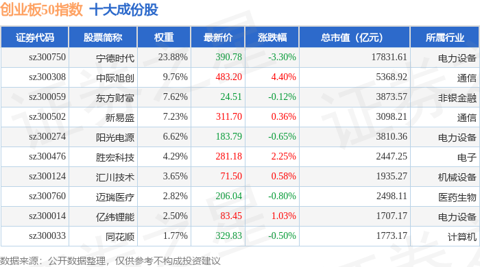证券之星消息,11月17日,创业板50(399673)指数报收于3263.76点,跌0.3%,成交1332.21亿元,换手率2.96%。当日该指数成份股中,上涨的有26家,蓝色光标以12.42%的涨幅领涨,下跌的有24家,康龙化成以5.34%的跌幅领跌。