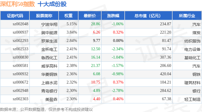 深红利50(399672)指数十大成份股详情如下:
