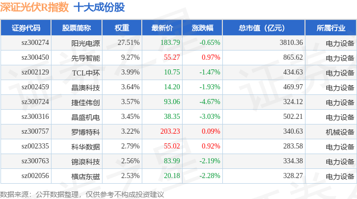 深证光伏R(470035)指数十大成份股详情如下: