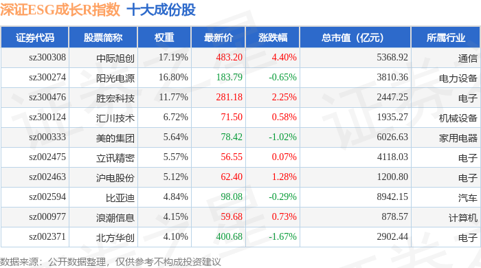 深证ESG成长R(470060)指数十大成份股详情如下: