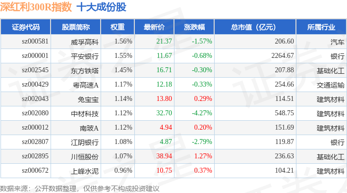 深红利300R(470062)指数十大成份股详情如下: