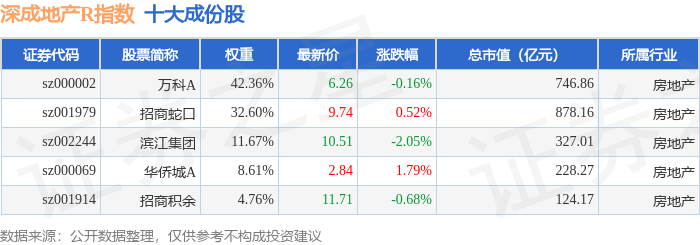 深成地产R(471001)指数十大成份股详情如下:
