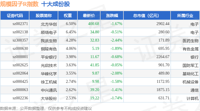证券之星消息,11月17日,规模因子R(480055)指数报收于2297.54点,跌0.88%,成交401.66亿元,换手率1.29%。当日该指数成份股中,上涨的有17家,盐湖股份以6.36%的涨幅领涨,下跌的有33家,迈为股份以6.71%的跌幅领跌。