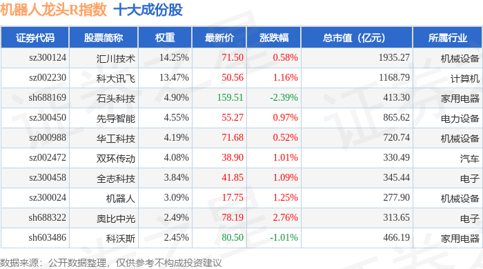 机器人龙头R(480071)指数十大成份股详情如下: