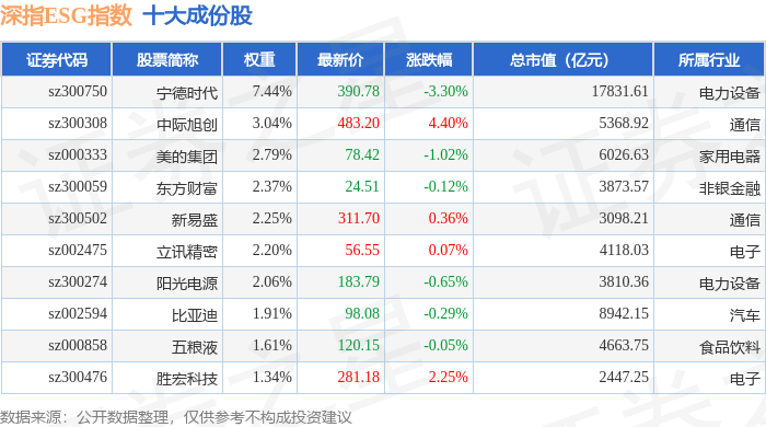 证券之星消息,11月17日,深指ESG(970026)指数报收于14022.87点,跌0.14%,成交4133.71亿元,换手率1.69%。当日该指数成份股中,上涨的有163家,天华新能以20.0%的涨幅领涨,下跌的有232家,迈为股份以6.71%的跌幅领跌。