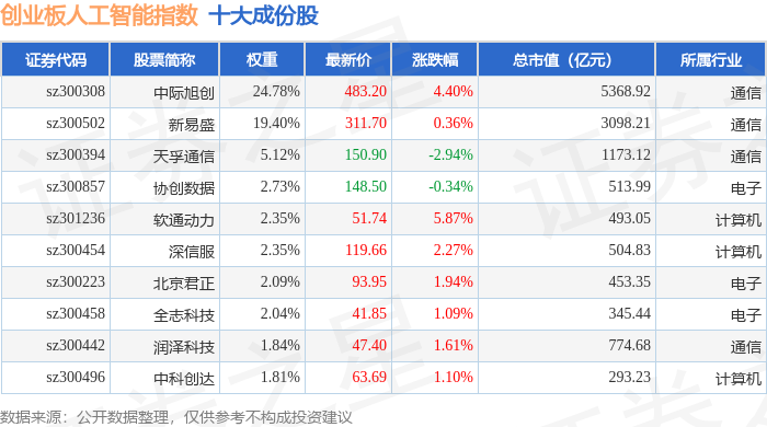 资金流向方面,创业板人工智能(970070)指数成份股当日主力资金净流入合计13.95亿元,游资资金净流出合计13.12亿元,散户资金净流出合计8305.21万元。成份股资金流向详情见下表: