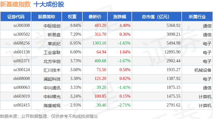 证券之星消息,11月17日,新基建(980029)指数报收于6920.07点,涨0.17%,成交1067.61亿元,换手率0.94%。当日该指数成份股中,上涨的有23家,三六零以10.01%的涨幅领涨,下跌的有27家,亿联网络以3.15%的跌幅领跌。