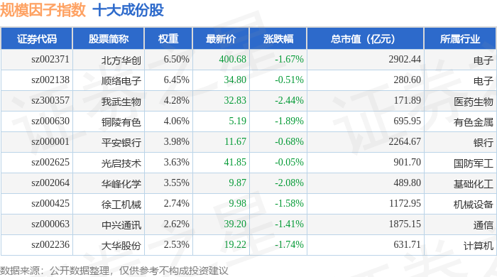 规模因子(980055)指数十大成份股详情如下: