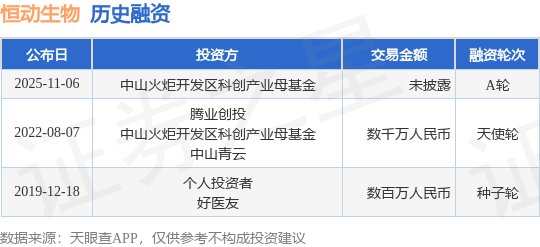 证券之星消息,根据天眼查APP于11月6日公布的信息整理,中山恒动生物制药有限公司A轮融资,融资额未披露,参与投资的机构包括中山火炬开发区科创产业母基金。