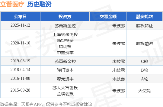 证券之星消息,根据天眼查APP于11月12日公布的信息整理,苏州市立普医疗科技有限公司股权转让融资,交易额未披露。