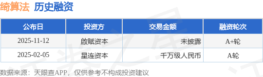 证券之星消息,根据天眼查APP于11月12日公布的信息整理,重庆绮算法科技有限公司A+轮融资,融资额未披露,参与投资的机构包括啟赋资本。