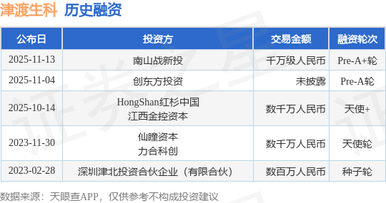 证券之星消息,根据天眼查APP于11月13日公布的信息整理,深圳津渡生物医学科技有限公司Pre-A+轮融资,融资额千万级人民币,参与投资的机构包括南山战新投。