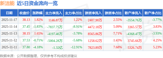 证券之星消息,截至2025年11月17日收盘,新洁能(605111)报收于38.13元,上涨1.82%,换手率5.99%,成交量24.89万手,成交额9.43亿元。