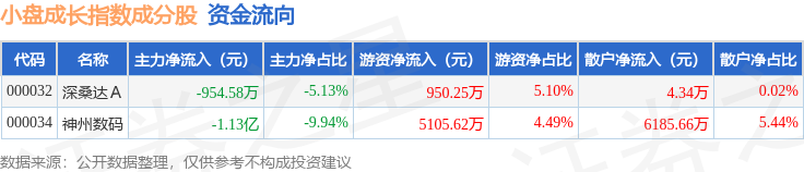 资金流向方面,小盘成长(399376)指数成份股当日主力资金净流出合计1.22亿元,游资资金净流入合计6055.87万元,散户资金净流入合计6190.0万元。成份股资金流向详情见下表:
