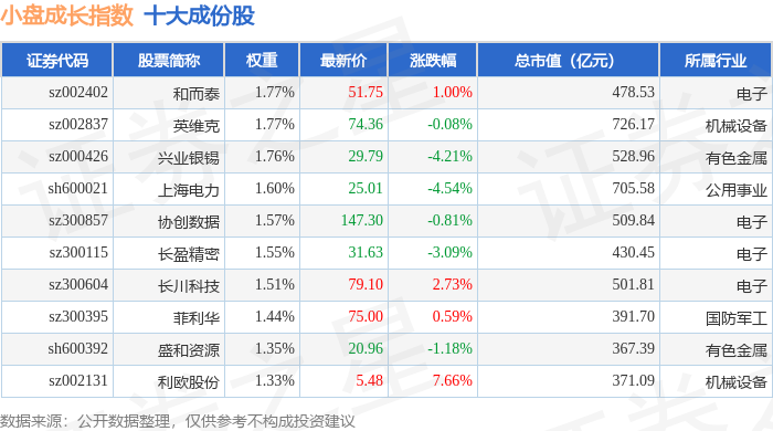 小盘成长(399376)指数十大成份股详情如下: