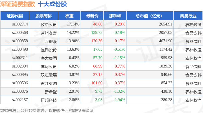 资金流向方面,深证消费(399617)指数成份股当日主力资金净流出合计2.56亿元,游资资金净流入合计5342.42万元,散户资金净流入合计2.03亿元。成份股资金流向详情见下表: