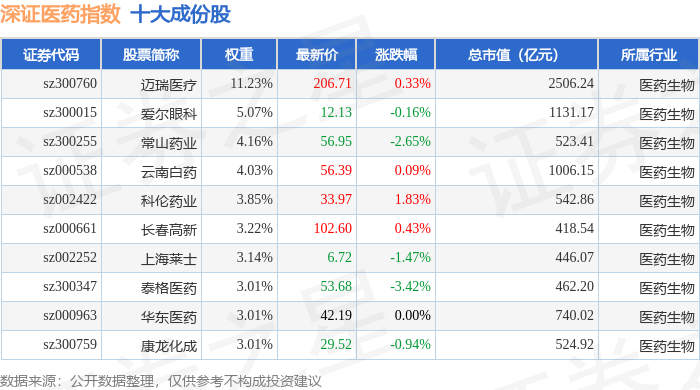 证券之星消息,11月18日,深证医药(399618)指数报收于8446.28点,跌0.42%,成交178.18亿元,换手率1.34%。当日该指数成份股中,上涨的有13家,京新药业以7.9%的涨幅领涨,下跌的有40家,奥赛康以4.3%的跌幅领跌。