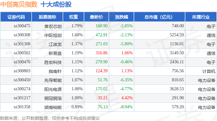 证券之星消息,11月18日,中创高贝(399666)指数报收于1989.33点,跌1.35%,成交2665.84亿元,换手率4.07%。当日该指数成份股中,上涨的有83家,蓝色光标以11.51%的涨幅领涨,下跌的有115家,富临精工以15.58%的跌幅领跌。