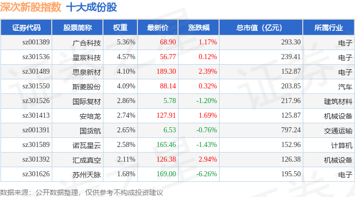 深次新股(399678)指数十大成份股详情如下: