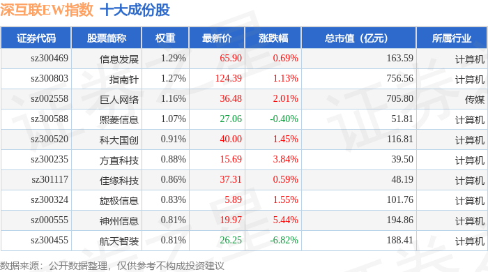 深互联EW(399677)指数十大成份股详情如下: