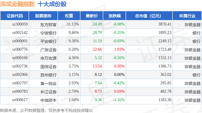 深成金融(399686)指数十大成份股详情如下: