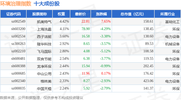 证券之星消息,11月18日,环境治理(399806)指数报收于1438.81点,跌1.91%,成交186.74亿元,换手率2.66%。当日该指数成份股中,上涨的有4家,凯美特气以7.65%的涨幅领涨,下跌的有46家,海陆重工以9.96%的跌幅领跌。