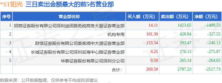 证券之星消息,沪深交易所2025年11月18日公布的交易公开信息显示,*ST阳光(000608)因连续三个交易日内,涨幅偏离值累计达到12%的ST证券、*ST证券和未完成股改证券登上龙虎榜。此次是近5个交易日内第1次上榜。