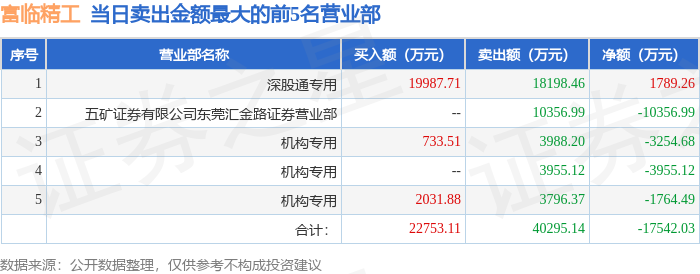 证券之星消息,沪深交易所2025年11月18日公布的交易公开信息显示,富临精工(300432)因日跌幅达到15%的前5只证券登上龙虎榜。此次是近5个交易日内第1次上榜。