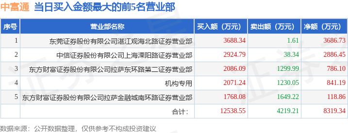 从龙虎榜公布的当日买卖数据来看,机构合计净买入841.19万元。上海溧阳路、上海超短帮、章盟主、作手新一等知名游资榜上有名。(知名游资上海溧阳路一般指中信证券股份有限公司上海溧阳路证券营业部席位、知名游资上海超短帮一般指国泰海通证券股份有限公司上海静安区新闸路证券营业部席位、知名游资章盟主一般指国泰海通证券股份有限公司上海浦东新区海阳西路证券营业部席位、知名游资作手新一一般指国泰海通证券股份有限公司南京太平南路证券营业部席位,根据市场资料整理,仅供参考)