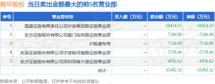 证券之星消息,沪深交易所2025年11月18日公布的交易公开信息显示,振华股份(603067)因有价格涨跌幅限制的日收盘价格跌幅偏离值达到7%的前五只证券登上龙虎榜。此次是近5个交易日内第1次上榜。