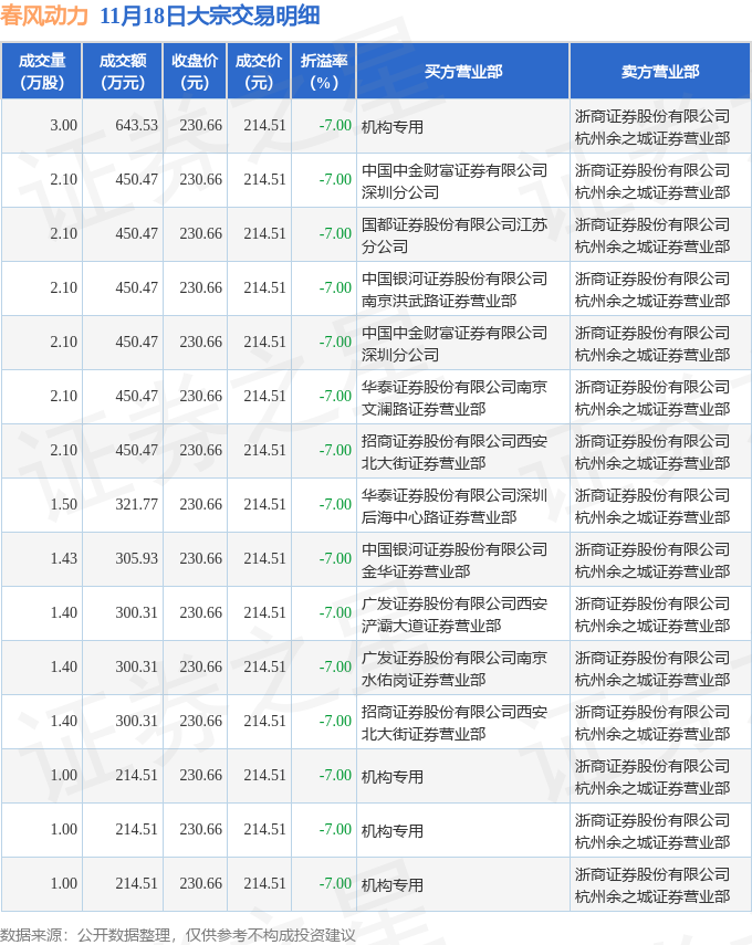 证券之星消息,11月18日春风动力发生大宗交易,交易数据如下: