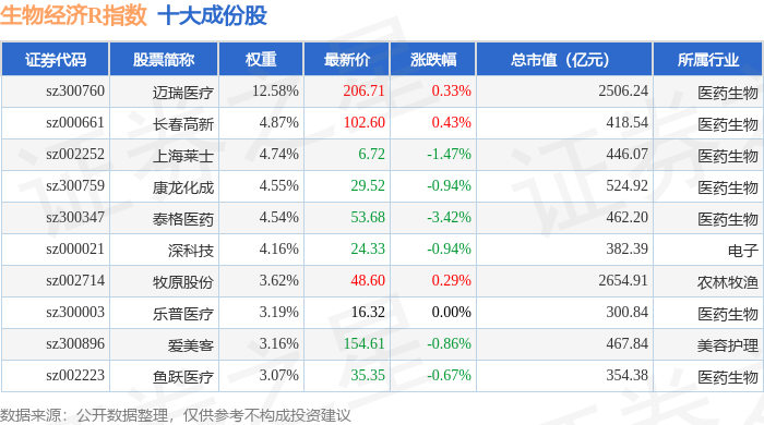 生物经济R(470038)指数十大成份股详情如下: